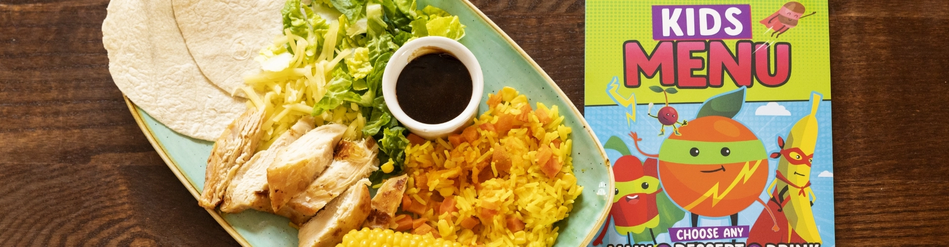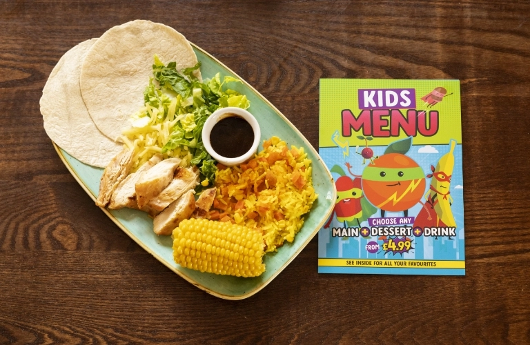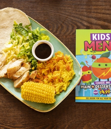 We've got new dishes specially designed for smaller appetites and bigger appetites too! We know it's important for your little one to try new tastes and flavours. So you'll be glad to see as well as all of our classic kids' favourites, we're now offering exciting new dishes like Crispy Squid, Steak & Ribs and DIY Chicken Tacos! We've also got plenty of Vegan and Vegetarian options for the little ones too!