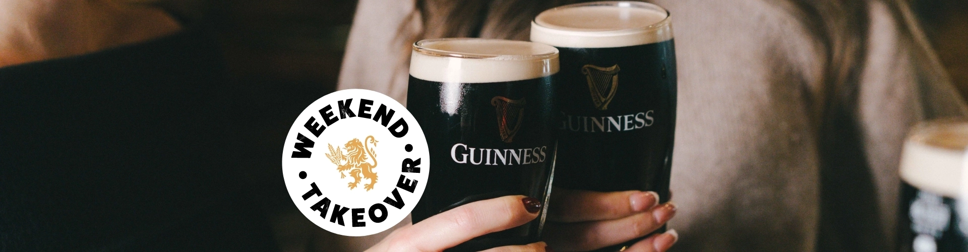 A graphic banner promoting the 'weekend takeover' with Guinness at Greene King Belhaven venues.