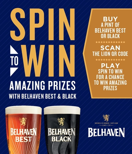 4. Entry requirements. Purchase a pint of Belhaven Best of Black in a participating outlet (subject to availability, see Clause for more details). Scan the QR code provided by a member of staff, follow the instructions on-screen which will take you to “Spin the Win” game, enter your details, Spin the Wheel and be in with a chance to win a prize. You will be sent an email to complete a form and claim your prize. Your details will be automatically entered into a prize draw of £100 Love to Shop Voucher. We have 4 Vouchers up for grabs, each one will be given out over the period of the game running.